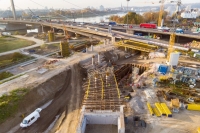 The centrepiece of the project is the Danube bridge, that will be extended after overall completion by two additional supporting structures, the by-pass bridges on both sides of the existing bridge. The by-pass bridges each consist of threebayed cable-stayed bridges (lengths 300 m) and foreshore bridges (lenths 240 m). Furthermore, eight crossing structures have to be renewed or extended and five retaining structures have to be newly built.
